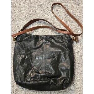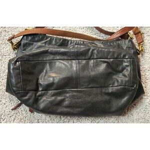 Fossil Corey Messenger Hobo Tote Purse Black Leather Brown Crossbody