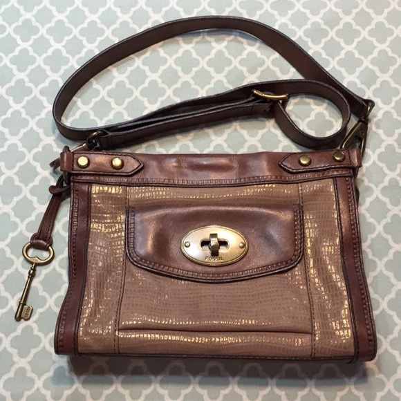 Fossil Croc Embossed Leather Turnlock Crossbody