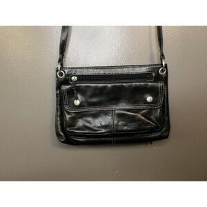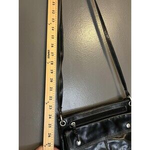 Fossil Crossbody Bag Womens Black Leather Adjustable Strap Organizer Purse