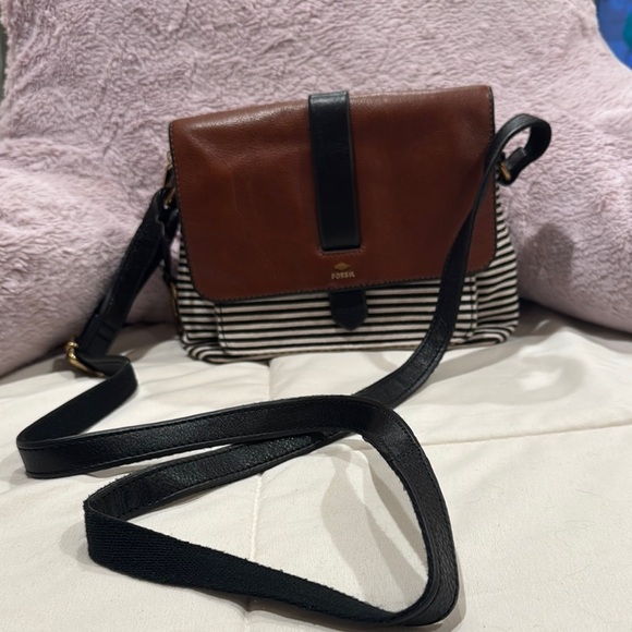 Fossil Crossbody Bag in Brown and Black with Leather Flap