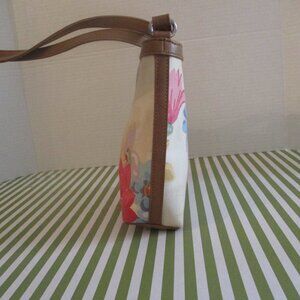 Canvas Floral Print with Light brown Leather or Leather Like trim * tag does not specify materials