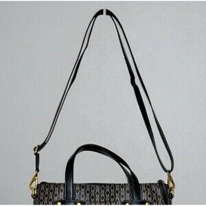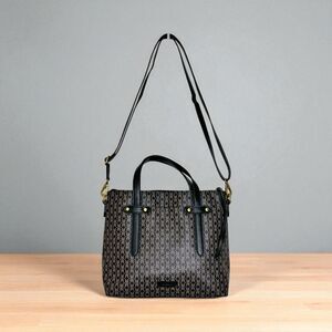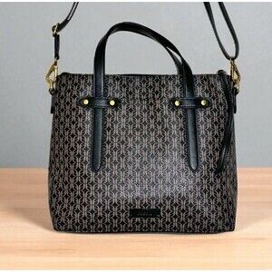 Fossil Crossbody Handbag Purse Mid Sz Black Tan Zip Closure Pockets Faux Leather