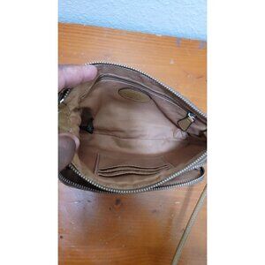 Fossil Crossbody Leather Bag Beige Small Purse With Adjustable Strap & Zippered
