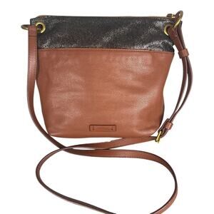 Fossil Crossbody Purse Keely Bag Brown Pebble Cowhide Black Sparkle Pockets