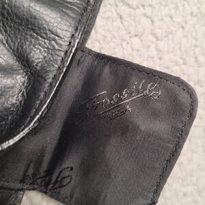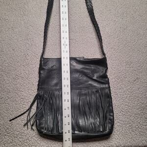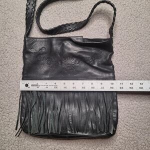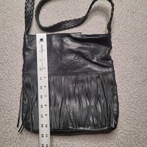 Fossil Crossbody Shoulder Bag Black Leather Floral Embossed Fringe Boho Hippie