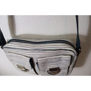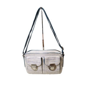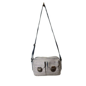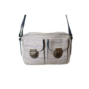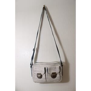 Fossil Crossbody Shoulder Bag Leather White Blue Striped Silver Buckle Accent 74