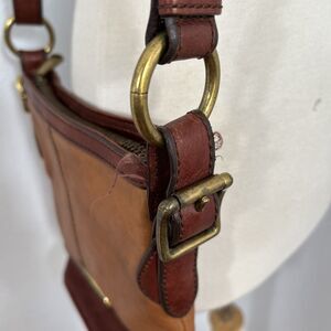 Fossil Crossbody Shoulder Purse Two Tone Brown Lather Bucket Purse