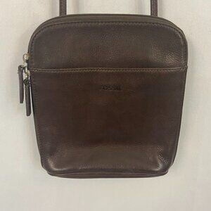 Fossil Crossbody Small Purse Bag Brown Leather Cell Phone Slip Pocket Organizer