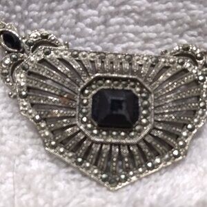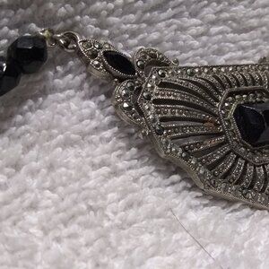 Up for sale is a Fossil Crystals Pendant Dark Stones Center Beaded Necklace Great Condition