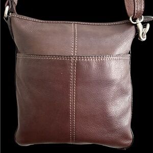 Sleek Fossil messenger bag in a rich, dark brown leather. Ideal for daily essentials. Stylish and functional design. This bag has a very unique design having a zip front that opens into a built in wallet with credit card slots! The leather has been conditioned and has been well taken care of! If you know the Fossil brand, then you know how great their leather is! The inside is also clean and ready to go!