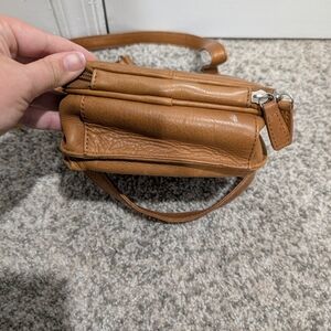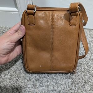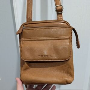 Fossil Dark Camel Soft Leather Adjustable Crossbody Organizer Purse