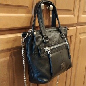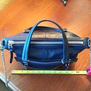 This versatile medium size tote features great quality supple pebbled leather with tonal stitching and bold silver tone hardware. Please note: it is missing original long strap, I will include the chunky chain strap shown in the photos.