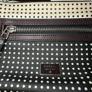 Fossil Dawson Polka Dot Brown, Black and Cream Crossbody Purse