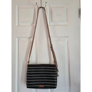 Fossil Devon Black White Striped Heart Crossbody Bag Key