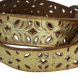 Fossil Distressed Laser Cut Tooled Gold Tone Belt Western Bling Festival Cowgirl
