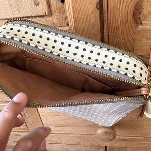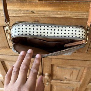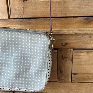 Fossil Dotted Leather Gray White Brown Crossbody Bag