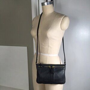 Fossil Double Zip Front Black Leather Crossbody