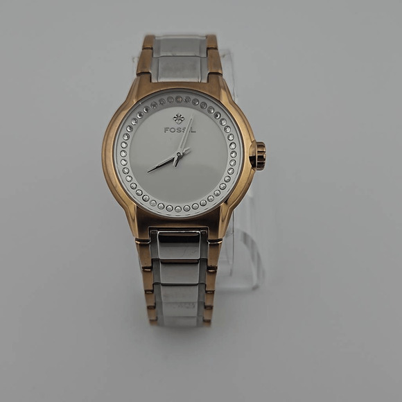 Fossil Dress Collection FS4419 Rose Gold Two Tone Watch New Battery