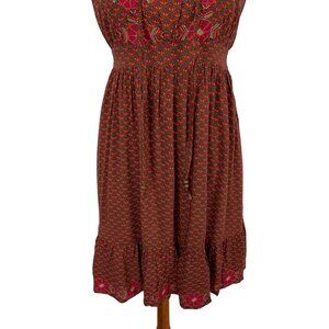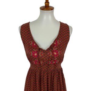 Fossil Dress Small Sleeveless Red Embroidered Boho Festival Summer