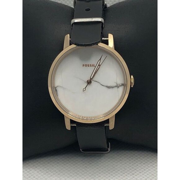 Fossil ES4404 Women's Black Leather Analog White Dial Quartz Wrist Watch KS311