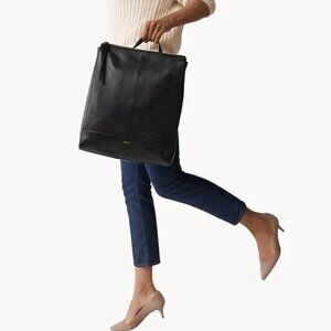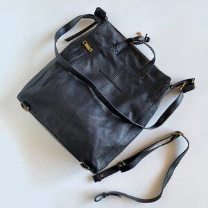 Fossil Elina Large Convertible Backpack Black Leather Crossbody Handbag
