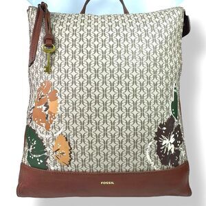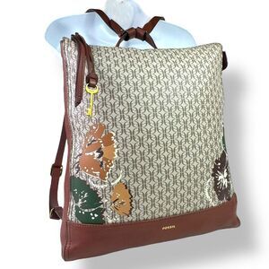 Fossil Elina Large Convertible Backpack Floral Brown Cream Leather Shoulder Bag