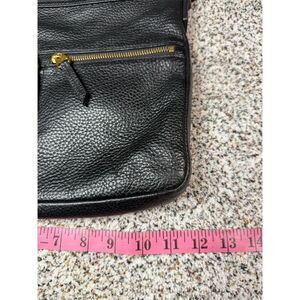 Discover the perfect blend of style and functionality with this Fossil crossbody bag. Crafted from luxurious pebbled leather in a timeless black hue, this bag is designed for the modern woman on the go. Its adjustable strap ensures a comfortable fit, while multiple pockets and zippered compartments keep your essentials organized and secure. The Fossil logo detailing adds a touch of elegance, making it a versatile accessory for any outfit. Measuring 12 inches wide and 10 inches high, this pre-owned bag is ready to accompany you on all your adventures.