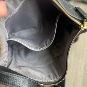 Light wear pictured on corners. There is light staining on interior lining. Small fuzzies on strap pictured.