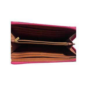 Stylish Fossil zip-around wallet with multicolor floral print, leather accents, multiple slots and zipoered coin pocket. Features durable material and a secure zip closure for functionality and fashion. 8 inch length x 4 inch height