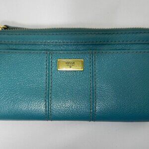 Fossil Ella Leather teal blue clutch Wallet Organizer credit cards i.d. zip pkt