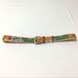 Fossil Embroidered Statement Belt Tea Button Belt Size Large