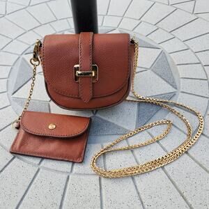 NWOT: Stylish, brown "Emery" genuine leather micro crossbody bag & matching wallet set with gold-tone logo emblem & hardware by Fossil.