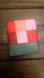 Stylish Fossil leather wallet with a patchwork design. Features red, pink, and grayish-green sections.