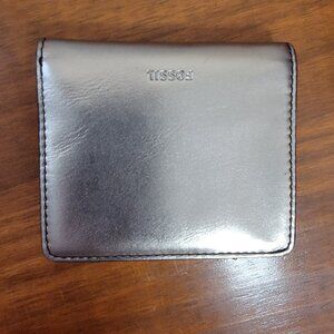 Fossil Emma RFID Mini Wallet in Metallic Pewter Faux Leather