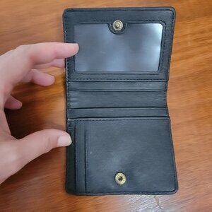 This polyurethane wallet features five credit card slots, one note compartment and one ID window.