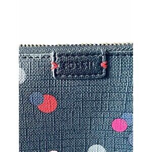Fossil Emma tab clutch wallet navy blue with polka dots 8”X4”
