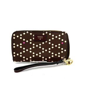 A timeless style with their treasured coated canvas finish, this Fossil wristlet is perfect for that quick trip to the store.