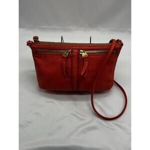 Fossil Erin Double Zip Crossbody Orange Leather Travel Shopping Purse Fall