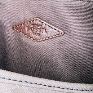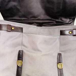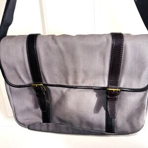Fossil Estate City Canvas Leather Messenger Bag Briefcase 15”x 11” Khaki Brown