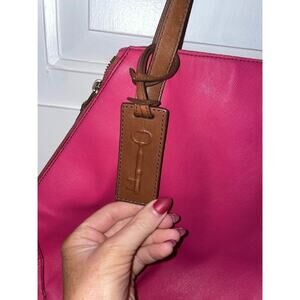 Fossil Expandable Gwen Shopper Tote Bag Travel Leather Wax Coated Pyramid Pink