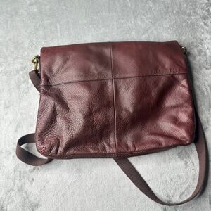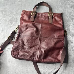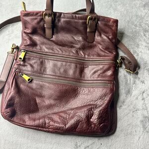 Fossil Explorer Fold-Over Brown Leather Handbag Crossbody Messenger Large Bag