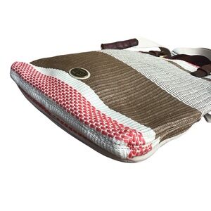 Fossil Explorer Foldover Straw and Leather Messenger Crossbody Tote Bag