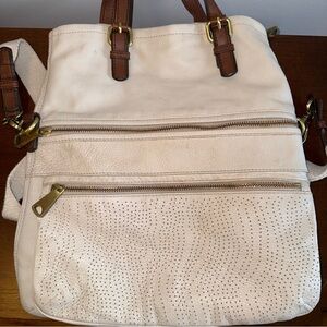 Fossil Explorer Foldover White Crossbody Bag
