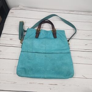 Fossil Explorer Turquoise Leather Foldover Crossbody Bag