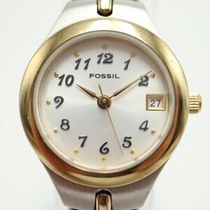 Fossil F2 Two Tone Womens 23mm Round Date Watch 6" Bracelet ES9439 w New Battery
