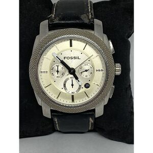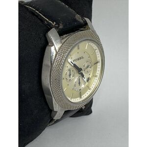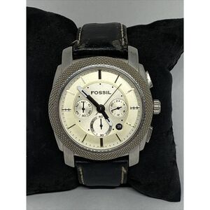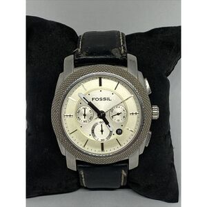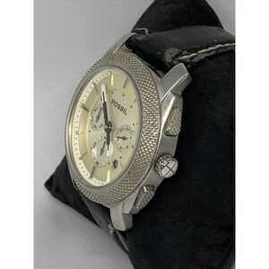 Fossil FS4437 Men's Black Leather Analog Beige Dial Quartz Genuine Watch WO750