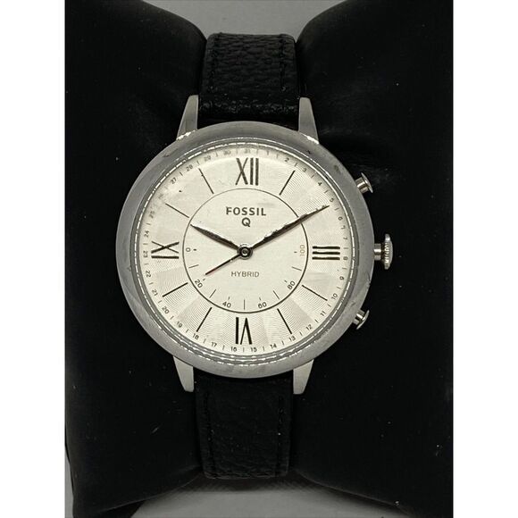 Fossil FTW5019 Women's Black Leather Silver Analog Dial Hybrid Smart Watch, 43 mm case diameter with stylish look. A classy watch is all you