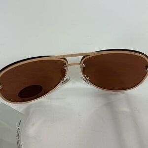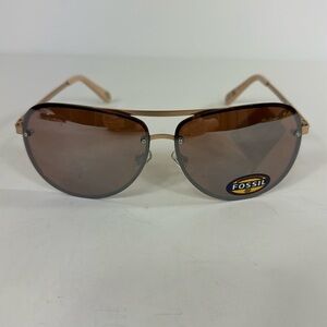 Fossil FW157 Rimless Pilot Aviator Sunglasses Gold Frame Brown Flash Lens New