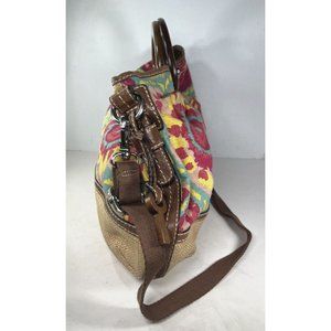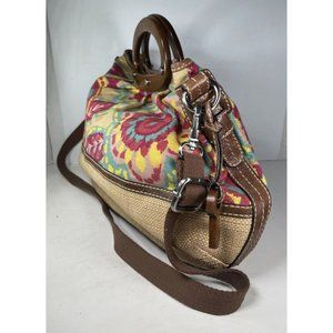 Fossil Fabric and Leather Geometric Floral Print Satchel Shoulder Bag