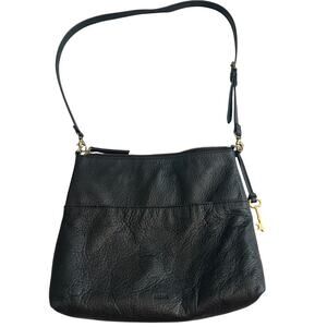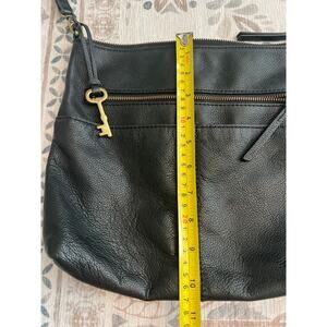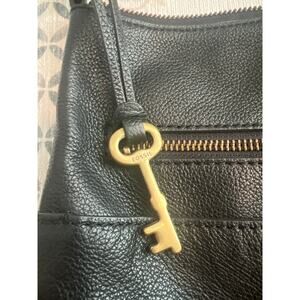 This is a pre-owned Fossil Fiona Black Leather Crossbody Tote Bag in good condition.